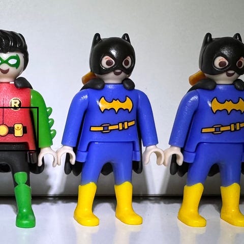 Myydään kaksi Kinder DC Playmobil -hahmoa. Figuurit ovat uusia, Kinder-pääsiäismunista saatuja.