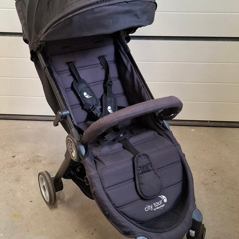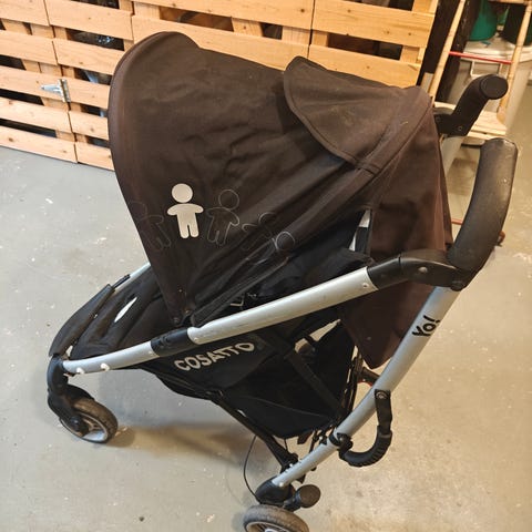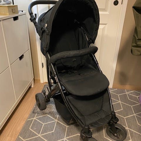 Petite Cherie matkarattaat kuviollisella mustavalkoisella kankaalla. Rattaissa on kevyt runko ja ne taittuvat sateenvarjomallisesti pieneen tilaan kuljetusta ja säilytystä varten. Istuinosa on pehmustettu ja varustettu turvavöillä. Alhaalla on tavarakori pienten kantamusten kuljettamiseen.