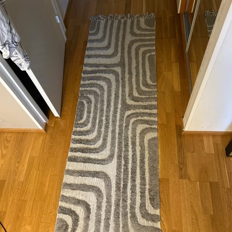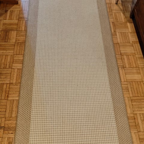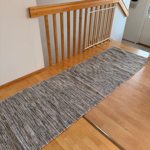 Käytävämatto 75x150. Harmaan ja beigen sävyinen. Sopii esimerkiksi eteiseen, käytävään tai keittiön kulkuväylälle. Sotkan tuotekuvaus;