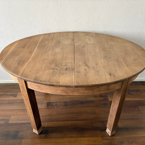 Pöytälevyssä ja jaloissa kulumaa, pintaviilusta puuttuu pieni pala (näkyy kuvissa).