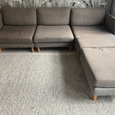 Annetaan kohtalaisessa kunnossa oleva sohva. Istuintyynyissä ja nojissa kulumaa ja värjäymää, elukoita ei ole ollut taloudessa. Runko ja pehmusteet kunnossa, ihan hyvä lepuuttelusohva siis. Mitat L210 S80. Haku honkalammelta.