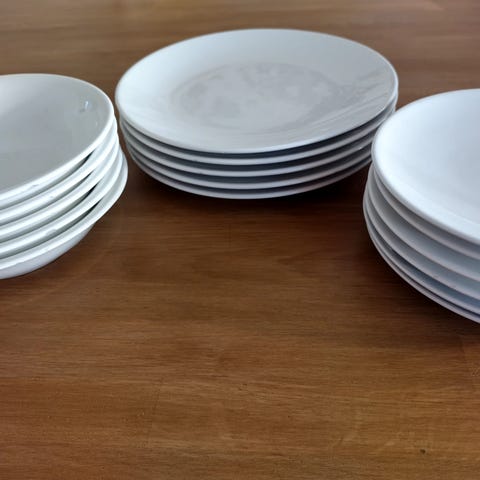 musta lautas- ja kulhosetti. Kokonaisuus sisältää useita erikokoisia matalia lautasia, syviä lautasia ja kulhoja samassa mustassa värissä.