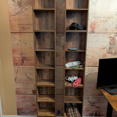 Tämä ja toinen tummaa puuta olisi saatavilla (tyhjänä tietenkin) molemmissa myös seinä jonka otin pois vaaleasta, mutta tallessa on jos haluaa