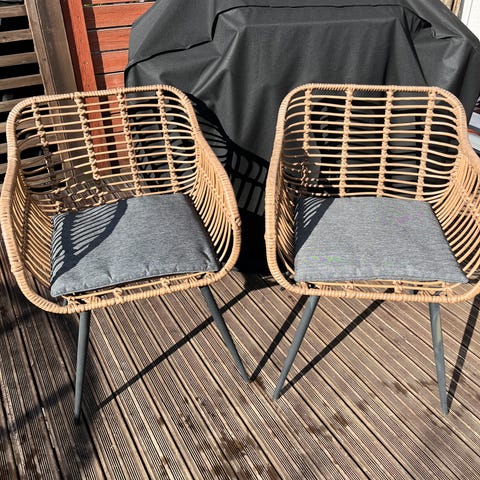 Myydään edullisesti 2kpl parveketuoleja pehmusteilla. :) Nouto vantaan pakkalasta Hinta on siis kahdelle tuolille. Mielellään nopea nouto uusien tieltä.