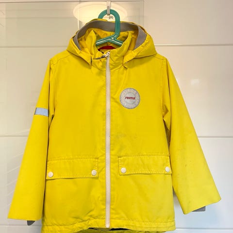 Hyväkuntoinen välikausi takki. Sisällä on tikkitakki joka on yhdistetty neppareilla sinapinkeltaiseen takkiin. Takkeja voi käyttää yhdessä tai erikseen. Ompelijan laittamat lisänapit hihoissa jotta riisuessa molempia yhdessä ne myös pysyisivät yhdessä. Heijastimissa kulumaa