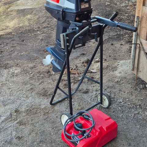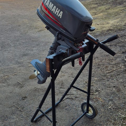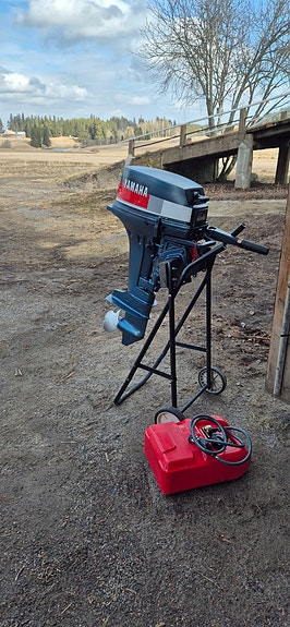 Juuri huollettu ja siistikuntoinen Yamaha 4hv, 2-tahtinen ja lyhytrikinen perämoottori. Tässä mallissa on vaihteet: Eteen-vapaa ja pakki.