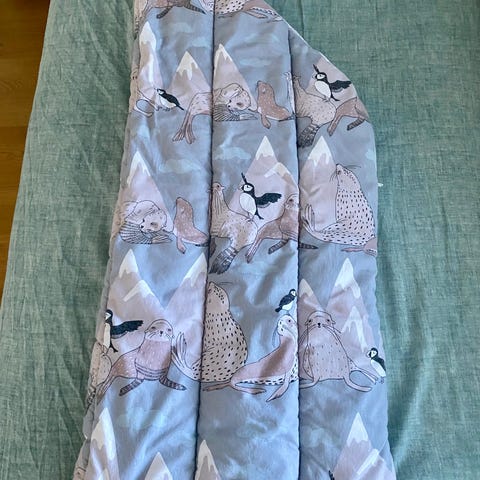 Vaalea kuosinen äitiyspakkaus 2023 vuoden makuupussi. Todella siisti kunto. Pesty hajusteettomilla pesuaineilla.