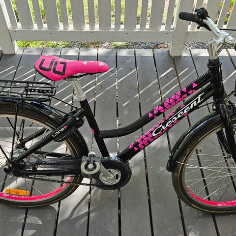 Myynnissä harvinaisen tyylikäs kulta-musta Crescent Lone -lastenpyörä, jonka somat tarramaiset somisteet viimeistelevät makean ulkokuoren. Tässä hellästi käytetyssä pyörässä on 24-tuumaiset renkaat ja 7 vaihdetta (Shimano Nexus) sekä seuraavat varusteet: