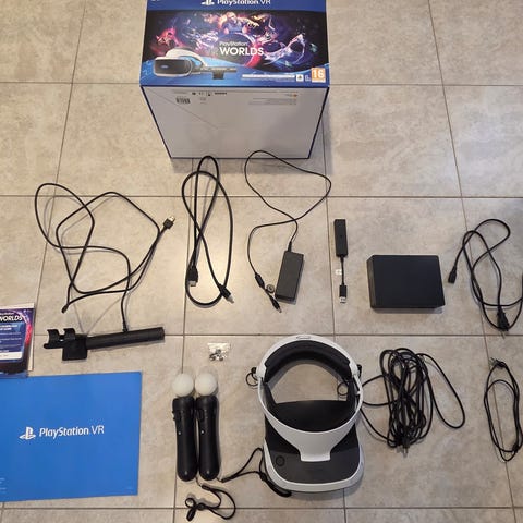 Myydään uudenveroinen PS4 VR setti.Max. 2-3 kerta kokeiltu, sisältää kaiken tarvittavan, lasit, kapulat, laturit, johdot, kameran, muuntimen yms. Alkuperäispakkaus mukaan! Sony PlayStation 4 VR -virtuaalilasipaketti. Mukana VR-lasien lisäksi prosessoriyksikkö, kaapelit, virtalähde sekä kaksi Move-ohjainta.