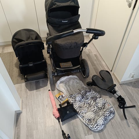 Myydään tarpeettomana laadukkaat Emmaljunga Super Viking -yhdistelmävaunut. Hyvä kokonaisuus arkeen, toimivat sekä yhdelle että kahdelle lapselle. Kuvien mukaiset säädöt vaunukopalla ja istuinosalla mahdollisia, tuplana tai ilman tuplaa.