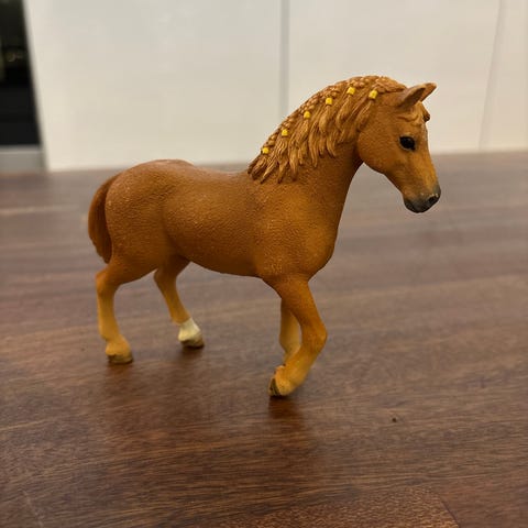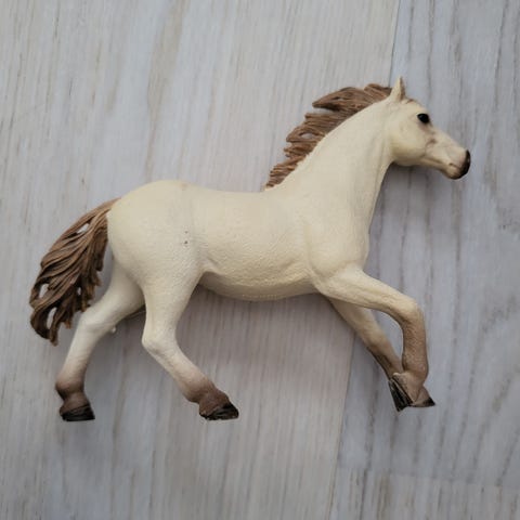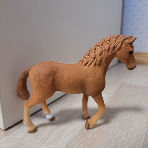 Schleich hevosfiguuri. Rautias quarter tamma. Leikitty, mutta hyvin säilynyt. Jälkiä turvassa ja kavioissa. Vuoden 2000 malli.