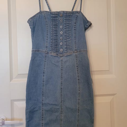 Siisti farkkumekko, jossa edessä vetoketju.