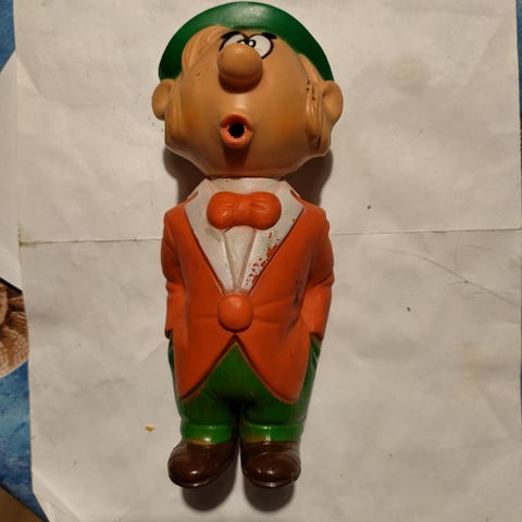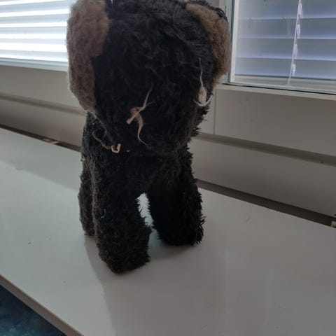 Vanha lelu. Hieman kovempaa materiaalia, mutta kuitenkin aavistuksen joustavaa. Oravan hännän liimaus irronnut selästä. Muuten kunto hyvä.