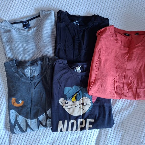 12 kpl perus hyväkuntoisia ja siistejä T-paitoja pakettina nuorelle miehelle M-koossa.