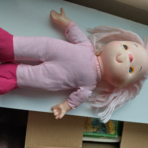 Vanha nukke 1980-luvulta. Pituus 35-40 cm..