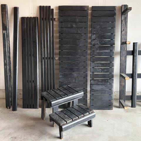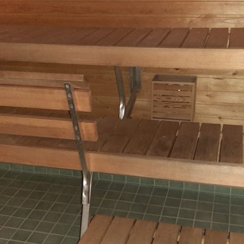 Puiset saunan lauteet, joissa on ylä- ja alataso sekä erillinen jakkara tai askelma. Leveys 202cm ja ylälauteen syvyys 53cm. Erittäin vähän käytetty, noin 20 kertaa saunottu.