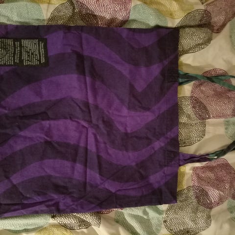 Valmistusmaa: Suomi. Sisällä alkuperäinen, siististi vuoreen ommeltu valkoinen kangaslappu: "marimekko® MADE IN FINLAND".