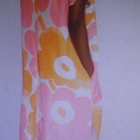 Marimekko Rimu Unikko -mekko, koko S. Mekko on valmistettu viskoosista ja siinä on sinivalkoinen Unikko-kuosi. Mallissa on väljä, todella kauniisti laskeutuva leikkaus. Kauluksen takaosassa hyvin pientä tummentumaa (kts kuva), en ole kokeillut pestä. Mekkoa on käytetty muutaman kerran, kunto todella hyvä.