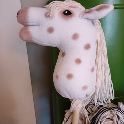 Keppihevonen ja loimi. Keppari luonnonvalkoista velboaa. Varren kanssa pituus 70 cm, mikä nostaa postikuluja. Loimi Ruutukangas ja Teddy.