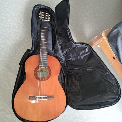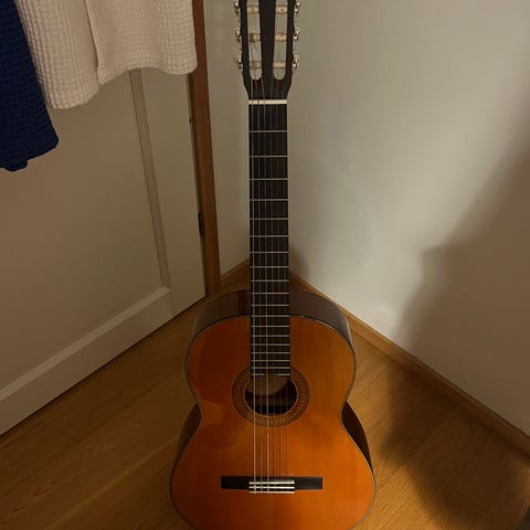Yamaha klassinen akustinen kitara nailonkielillä. Täysikokoinen malli, jossa perinteinen soikea ääniaukko ja koristeellinen rosetti. Vaalea, lakattu kansi ja tummempi sivu- ja pohjarakenne. Virityskoneistot sivuilla, muoviset viritystapit. Sopii klassisen kitaran soittoon, säestämiseen ja harjoitteluun. Kuvissa näkyy myös pehmeä kantopussi kitaralle.
