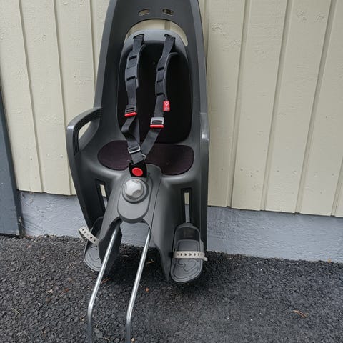 Hyvässä kunnossa oleva lasten pylrän istuin + kiinnike mukana.