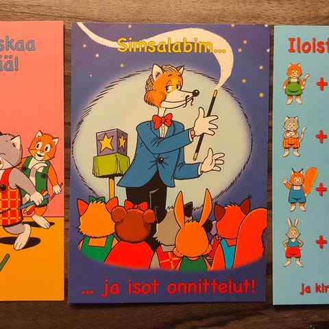 Kulkemattomat 2-osaiset postikortit Minna Immonen 3kpl. Ei tekstejä sisällä. Hinta kaikille yhteensä 1€