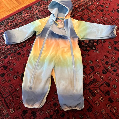 Name it merkin yksisarviskuosinen softshell haalari, koko 74. Jalkaremmit puuttuu, muuten ihan hyvä kuntoinen.