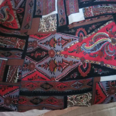 Ruskeasävyistä juuttikangasta. Ensimmäisessä kuvassa olevan mitat n. 155x95 cm. Toisessa kuvassa lyhyempi kangas 162x100 cm, pidempi kangas n. 100x300 cm, jonka toisesta reunasta on otettu pieni pala. Toisen kuvan kankaat ovat tiheämmällä "neuloksella" kuin ensimmäisen kuvan kangas. Ero näkyy lähikuvassa. Hinta yhteensä 30 €. Voin myydä yksittäinkin.