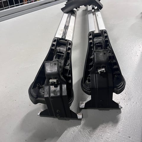 Nissan kattotelineet. Metalliset, mustat poikittaiskiskot auton katolle. Sisältävät kiinnikkeet ja kiristimet auton kattokaiteisiin tai kiinnityspisteisiin. Soveltuvat esimerkiksi kuljetuslaatikoiden, suksiboksin tai muiden kattokuormien kiinnittämiseen.