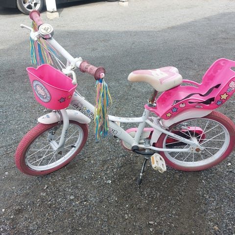Supersöpö vaaleanpunainen STOY lasten polkupyörä, jossa 16" renkaat. Mukaan apupyörät. Yhden kesän käytetty, oikein siistikuntoinen seuraavalle!