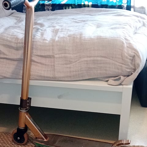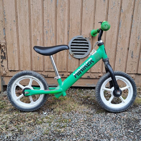 Hyvässä kunnossa oleva kick-bike. Etujarrullinen.
