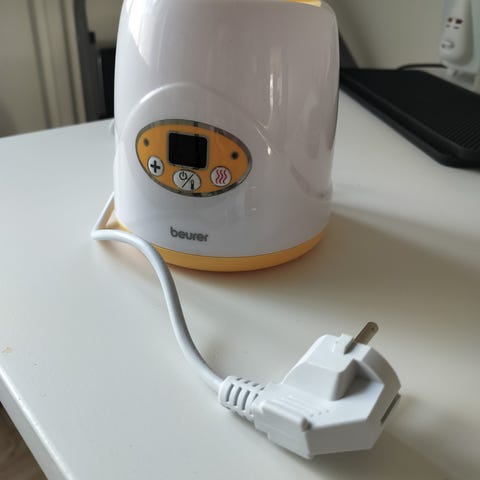 Tommee Tippee maidonkorvikkeen lämmitin. Lisää jauhe pulloon (ei mukana). Laita kylmä vesi koneeseen. Kone kuumentaa maidon ja valmistaa äidinmaidonkorvikkeen. Ohjeet netistä.