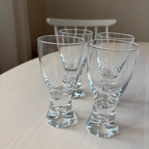 Tämä on Tapio Wirkkalan nimikkolasistoon kuuluva jalallinen lasi, jonka tunnistaa jalassa olevasta ilmakuplasta.