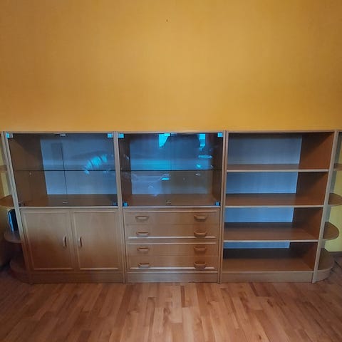 Annetaan vitriini lasiovella ja kolmella tasolla. Vain nouto, omat kantajat!