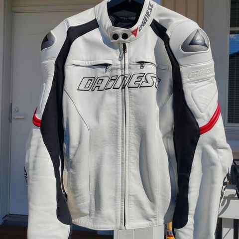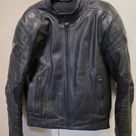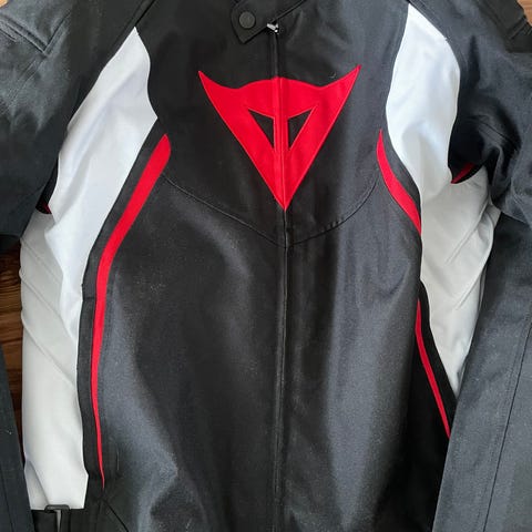 Myydään käytettynä ostettu Dainesen tekstiilinen ajotakki koossa 54. Kunto on asiallinen, mutta käytön jälkiä löytyy (yleiskunto hyvä/kohtalainen). Kaikki vetoketjut ja kiinnitykset ovat kuitenkin ehjiä.
