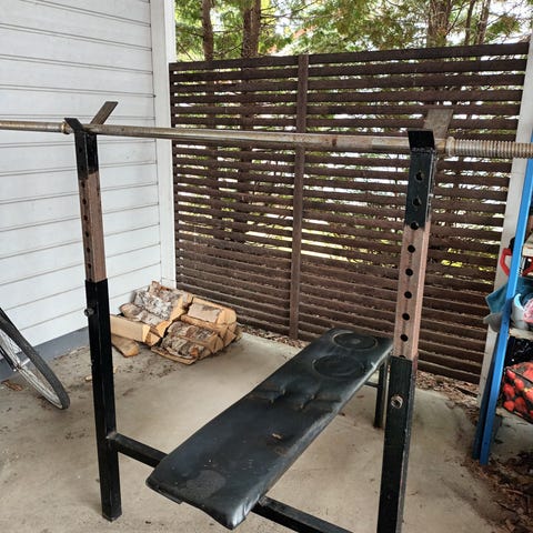 Kokoontaitettava penkkipunnerruspenkki. Ollut edellisellä ulkokäytössä, joten ei uutta vastaava, mutta rakenteellisesti kunnossa.
