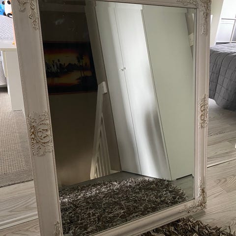 Erittäin siistit Arabian keraamiset peili ja hylly. Peilin mitat 50 cm x 60 cm. Hyllyn mitat 62 cm x 15 cm. Myynnissä myös toinen valkoinen hylly omana ilmoituksenaan.