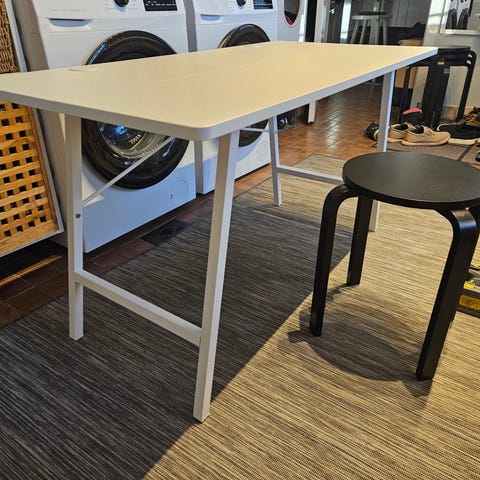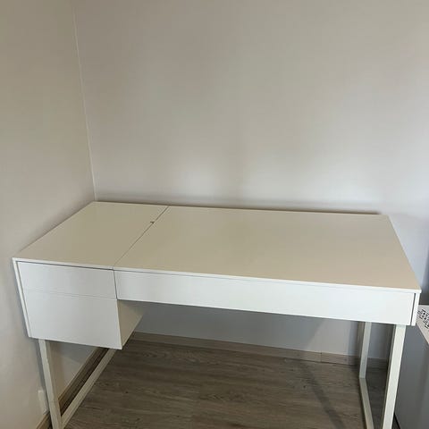 Työpöytä jäänyt tarpeettomaksi . Pöytä ehjä ja vakaa, mutta kansilevyssä kuitenkin käytöstä/tussin poistamisesta tulleita jälkiä joten lähtee uuteen kotiin hyvin edulliseen hintaan.