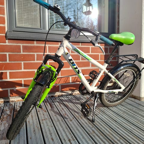 Myydään siisti, ehjä ja hyvin pidetty Bitz‑merkkinen 20-tuumainen lastenpyörä. Pyörä on säilytetty aina lämpimässä ja kuivassa, mikä on pitänyt sekä rungon että osat hyväkuntoisina.