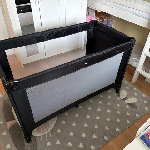 Myydään ehjä ja toimiva Carena matkasänky lapselle. Vetoketjusta on vedin irronnut mutta vetoketju kulkee silti normaalisti. Sisäpituus 115 cm, leveys 60 cm, kokonaiskorkeus noin 76 cm. Sängyssä on pehmustetut laidat ja verkkomaiset sivut, jotka mahdollistavat näkyvyyden ja ilmanvaihdon. Väri on musta-beige. Sänky on kokoontaitettava ja mukana tulee kantokassi helpottamaan kuljetusta ja säilytystä. Soveltuu matkakäyttöön ja nukkumapaikaksi lapselle.
