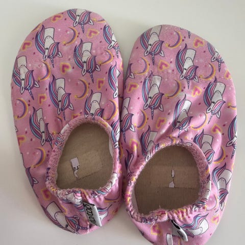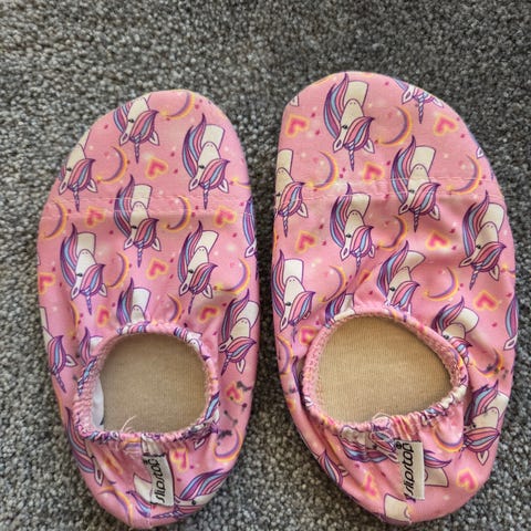 Lapsi käytti näitä päiväkodissa sisätossuina. Näyttävät uusilta, ainoastaan jälki nimitarroista. Parhaat päiväkoti tossut ikinä. Sopivat myös rannalle tai uimakengiksi. Unisex-malli, vaaleanvioletit pandakuviolla.