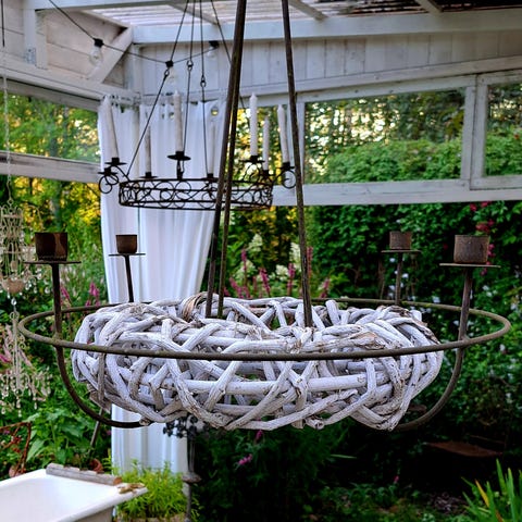 VARATTU MAANANTAIHIN! Suuri ja näyttävä, reilusti patinaa pintaansa saanut kynttiläkruunu puutarhaan.