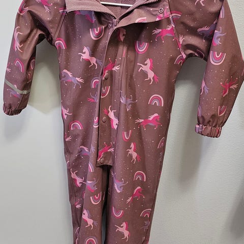 Sininen ellos sadehaalari koko 104. Fleecevuorellinen. Hyväkuntoinen, pintanaarmu toisessa polvessa, yleisilme siisti. Ehjä.