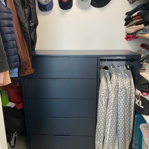 Myydään vaatekaappi uuden kaapin tieltä. Malli on Ikean Kleppstad. Sisällä vaatetanko ja hyllyt. On ollut useamman vuoden käytössä, joten käytön jälkiä löytyy. Nupit vaihdettu, mutta saa vaihdettua helposti halutessaan uusiin.