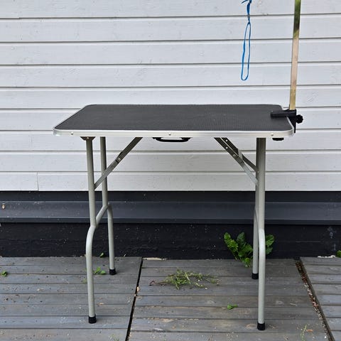 Korkeussäädettävä tukeva trimmauspöytä. Jalat saa taitettua kasaan. Pinnassa tahroja. Nouto Summasta, Haminasta