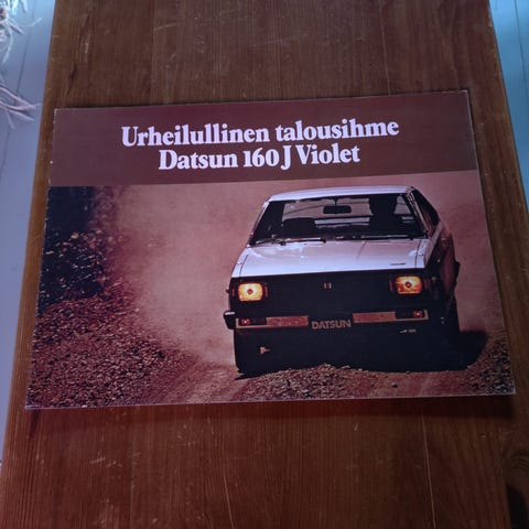 Upea, suomenkielinen myyntiesite joka on painettu 1973. Esittelyssä kaikki vuonna 1973 Suomessa myytävät Datsun mallit.