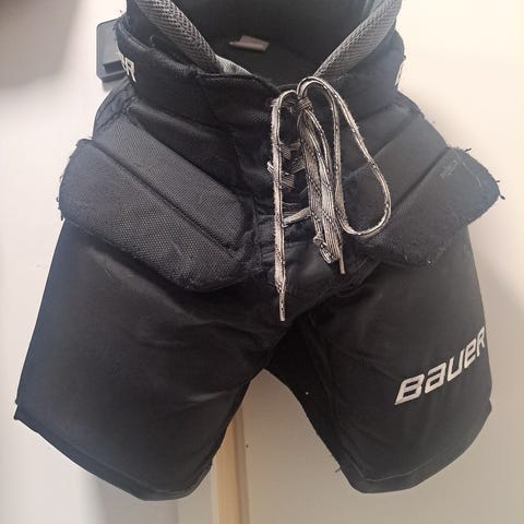 Bauer Supreme Mv-housut. Ei suurempia rispaantumisia ja kunnoltaan hyvät. Ei levyjä rikki tms. Koko INT S, kokotaulukko kuvissa. Mukaan hyvät henkselit, malliltaan neppareihin kiinnitettävät. Ne ovat pientä kokoa, mutta jos veska käyttää henkseleitä panssarin alla, luulisi menevän