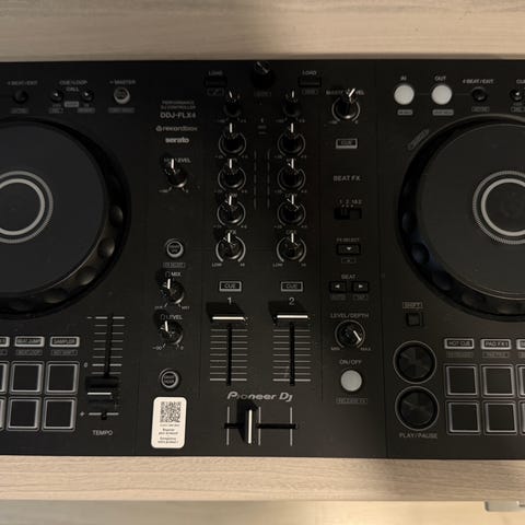 Pioneer DJ DDJ‑FLX4 -DJ kontrolleri musta. Kontrollerissa ei ole käytön jälkiä ja piuha tulee mukaan. Ja on tinkimisvaraa