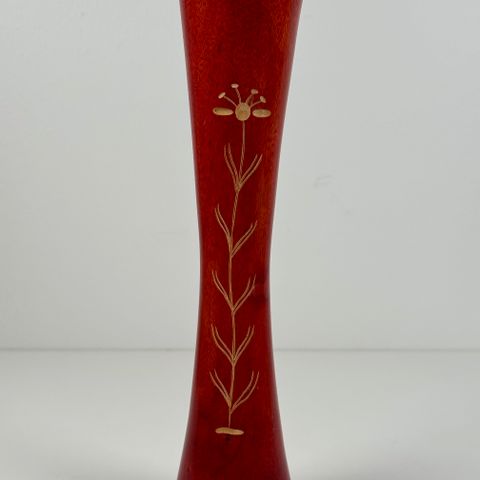 Yksinkertaisen tyylikäs puusta sorvattu maljakko.
