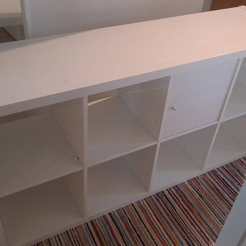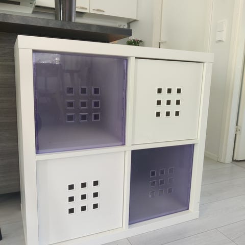 IKEA hyllykkö, jossa 4 avointa lokeroa. Väri vihreä. Sopii esimerkiksi lastenhuoneeseen kirjojen, lelujen tai säilytyskorien järjestämiseen. Hyllykkö voidaan sijoittaa lattialle tai kiinnittää seinään, nyt siinä on pienet 4cm korkeat jalat alla.